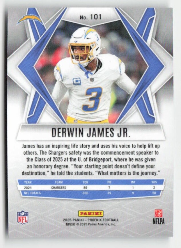You are purchasing a 2025 Panini Phoenix Derwin James Jr. #101. You will receive the exact item in the photographs. Thank you for looking.