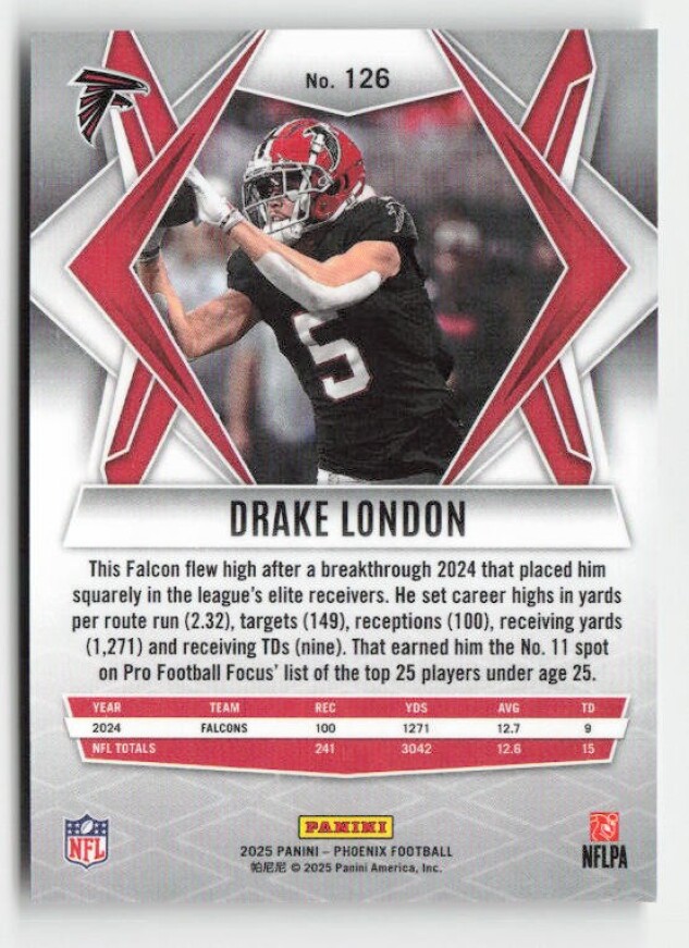 You are purchasing a 2025 Panini Phoenix Drake London #126. You will receive the exact item in the photographs. Thank you for looking.