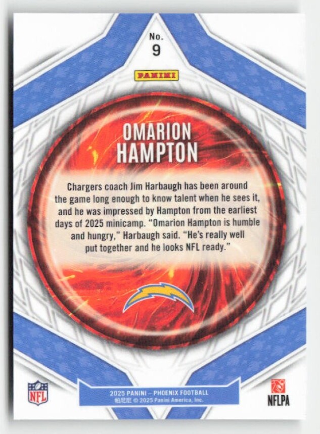 You are purchasing a 2025 Panini Phoenix Omarion Hampton #9 Paragon RC. You will receive the exact item in the photographs. Thank you for looking.