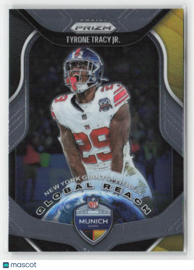You are purchasing a 2025 Panini Prizm Tyrone Tracy Jr. #10 Global Reach insert. You will receive the exact item in the photographs. Thank you for looking.