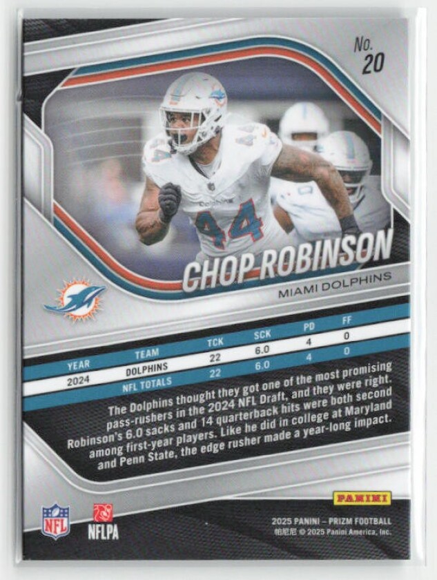 You are purchasing a 2025 Panini Prizm Chop Robinson #20. You will receive the exact item in the photographs. Thank you for looking.