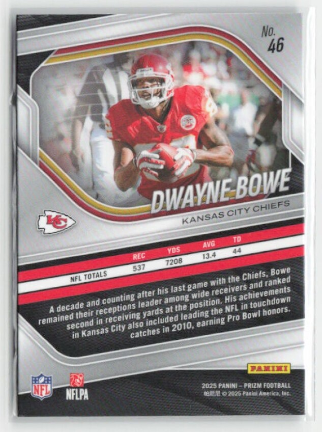 You are purchasing a 2025 Panini Prizm Dwayne Bowe #46. You will receive the exact item in the photographs. Thank you for looking.