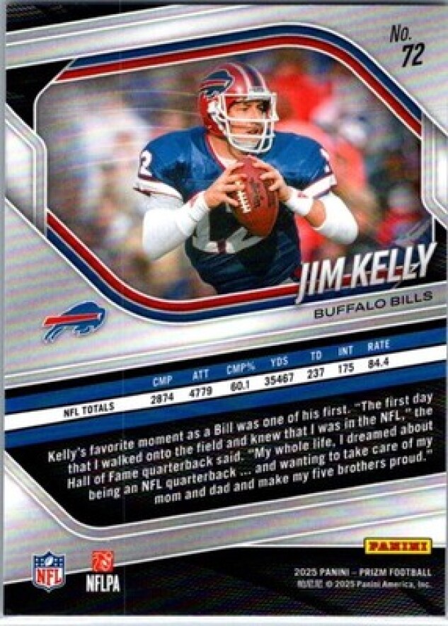 This is a nice example of a 2025 Panini Prizm #72 Jim Kelly