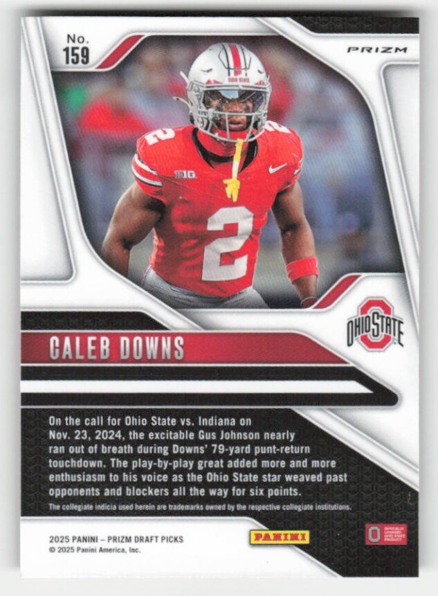 You are purchasing a 2025 Panini Prizm Draft Picks Caleb Downs #159 Prizms Red Ice. You will receive the exact item in the photographs. Thank you for looking.