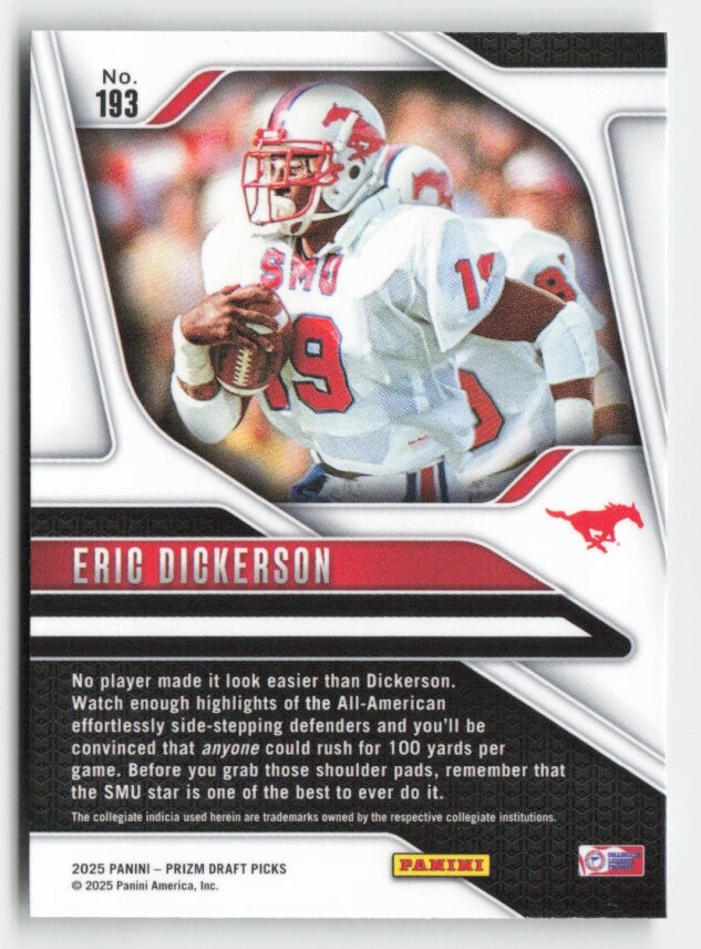 You are purchasing a 2025 Panini Prizm Draft Picks Eric Dickerson #193. You will receive the exact item in the photographs. Thank you for looking.