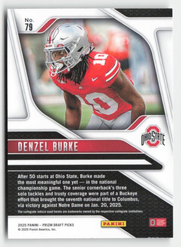 You are purchasing a 2025 Panini Prizm Draft Picks Denzel Burke #79 Prizms Silver. You will receive the exact item in the photographs. Thank you for looking.