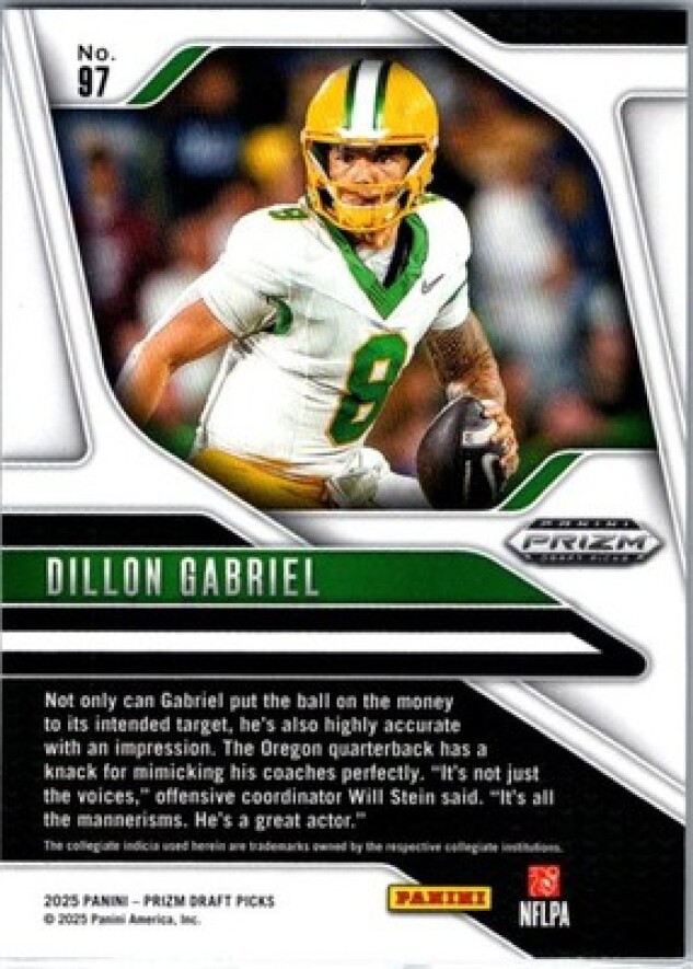 This is a nice example of a 2025 Panini Prizm Draft Picks #97 Dillon Gabriel