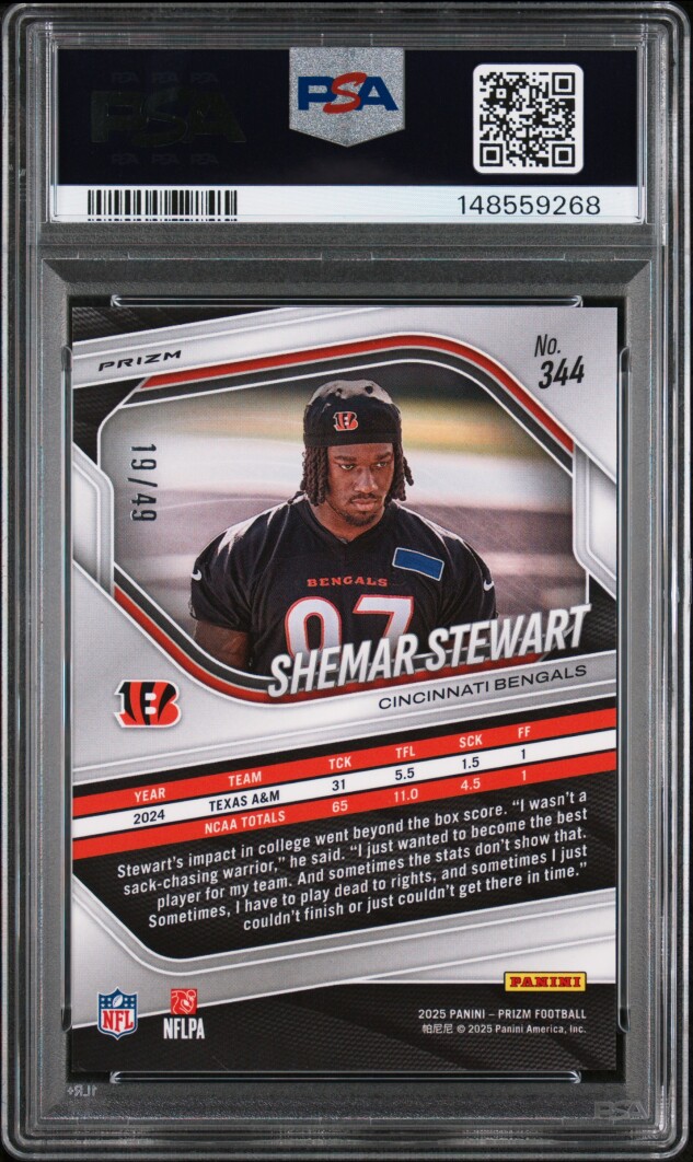 You are purchasing a 2025 Panini Prizm Shemar Stewart Red Shimmer PSA 10. You will receive the exact item in the photographs. Thank you for looking.