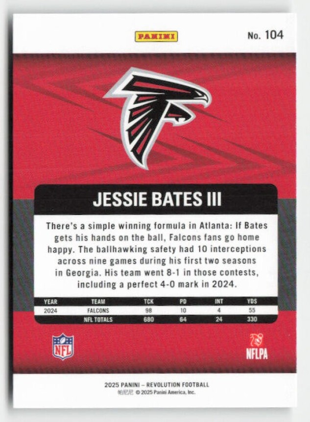 You are purchasing a 2025 Panini Revolution Jessie Bates III #104. You will receive the exact item in the photographs. Thank you for looking.
