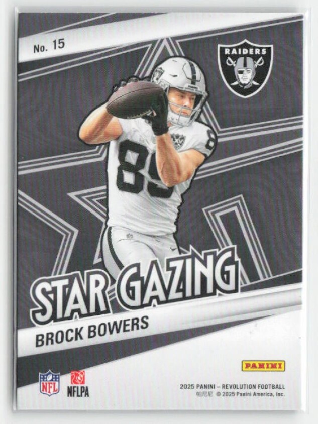 You are purchasing a 2025 Panini Revolution Brock Bowers #15 Star Gazing. You will receive the exact item in the photographs. Thank you for looking.