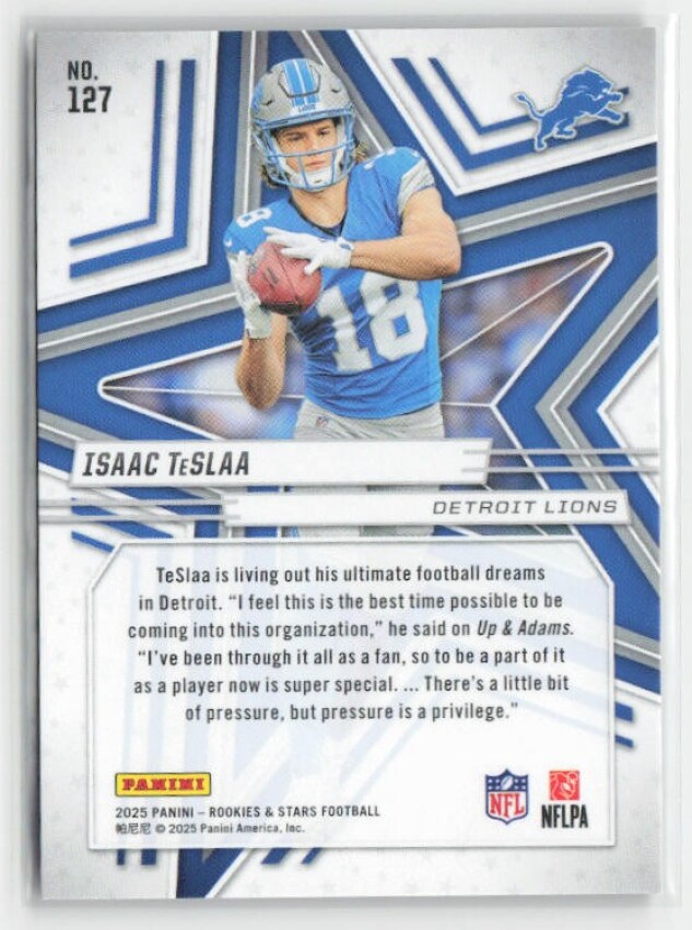 You are purchasing a 2025 Panini Rookies & Stars Isaac TeSlaa #127 Red and Blue SP SN RC. You will receive the exact item in the photographs. Thank you for looking.