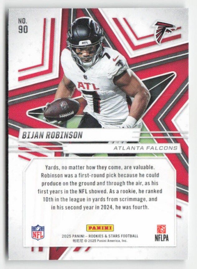 You are purchasing a 2025 Panini Rookies & Stars Bijan Robinson #90. You will receive the exact item in the photographs. Thank you for looking.