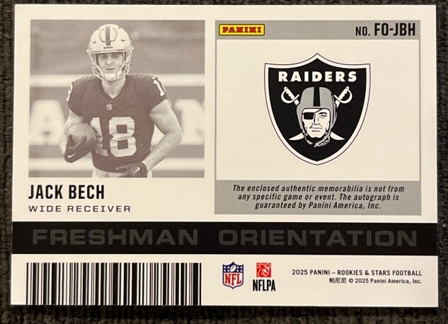 2025 Panini Rookies & Stars Freshman Nation Auto 11/25 SSP Jumbo Two Color Patch