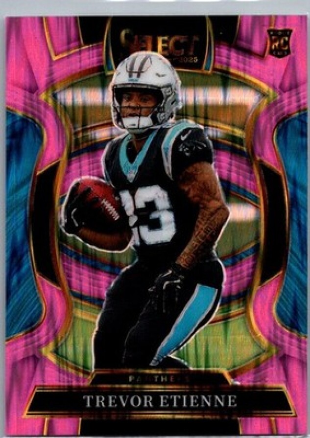 This is a nice example of a 2025 Panini Select #45 Trevor Etienne Pink Prizm Shock