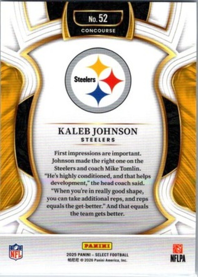 This is a nice example of a 2025 Panini Select #52 Kaleb Johnson