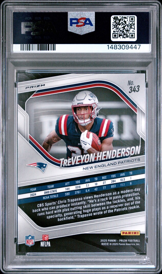 You are purchasing a 2025 Prizm Treveyon Henderson White Disco Rookie #343 PSA 10. You will receive the exact item in the photographs. Thank you for looking.