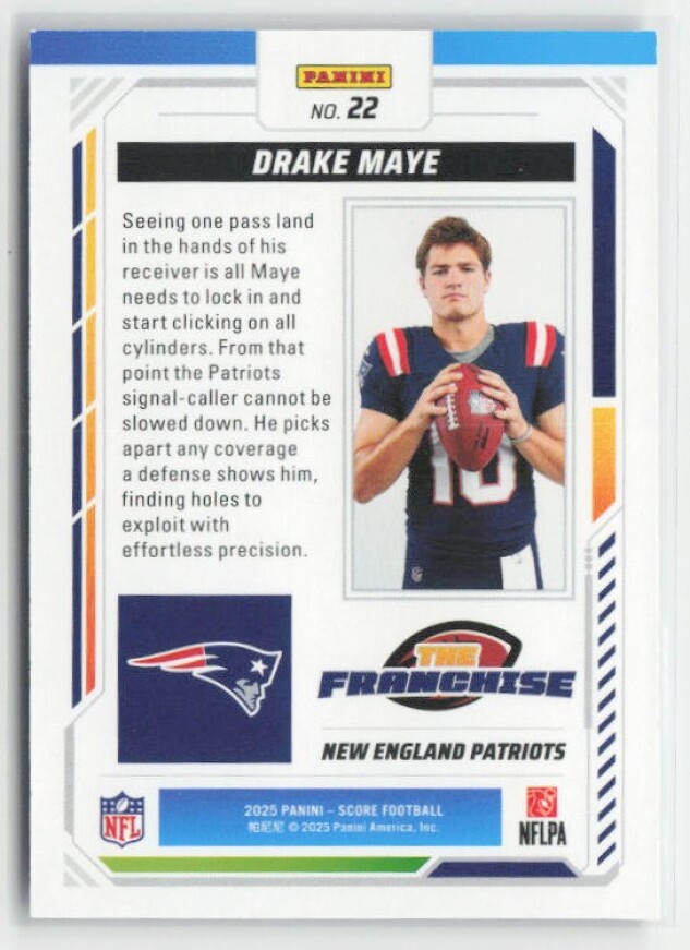 You are purchasing a 2025 Score Drake Maye #22 The Franchise. You will receive the exact item in the photographs. Thank you for looking.