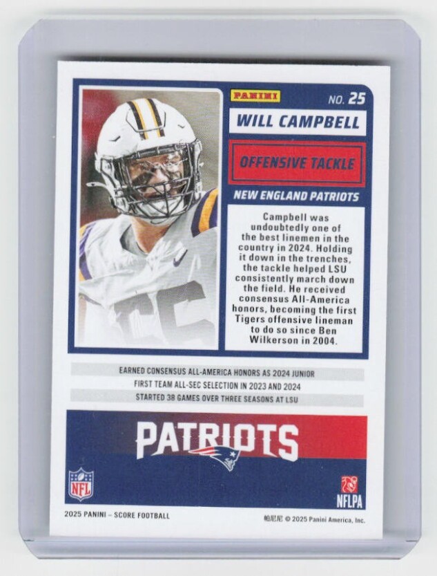 You are purchasing a 2025 Score Will Campbell #25 RC. You will receive the exact item in the photographs. Thank you for looking.