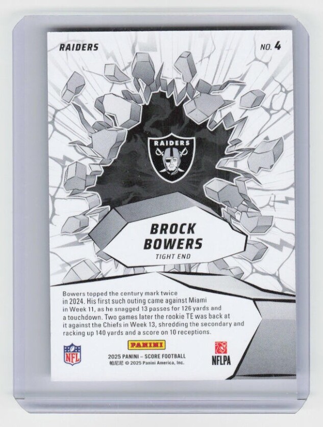 You are purchasing a 2025 Score Brock Bowers #4 Emerged. You will receive the exact item in the photographs. Thank you for looking.