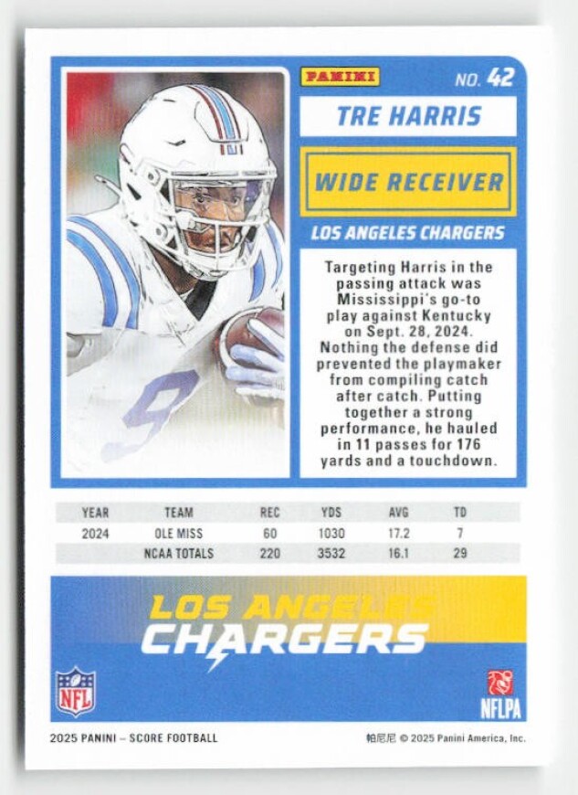 You are purchasing a 2025 Score Tre Harris #42 Red RC. You will receive the exact item in the photographs. Thank you for looking.