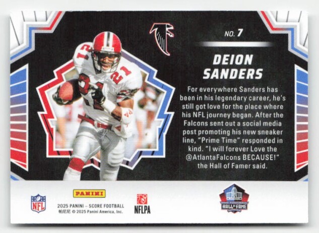 You are purchasing a 2025 Score Deion Sanders #7 Men of Canton. You will receive the exact item in the photographs. Thank you for looking.