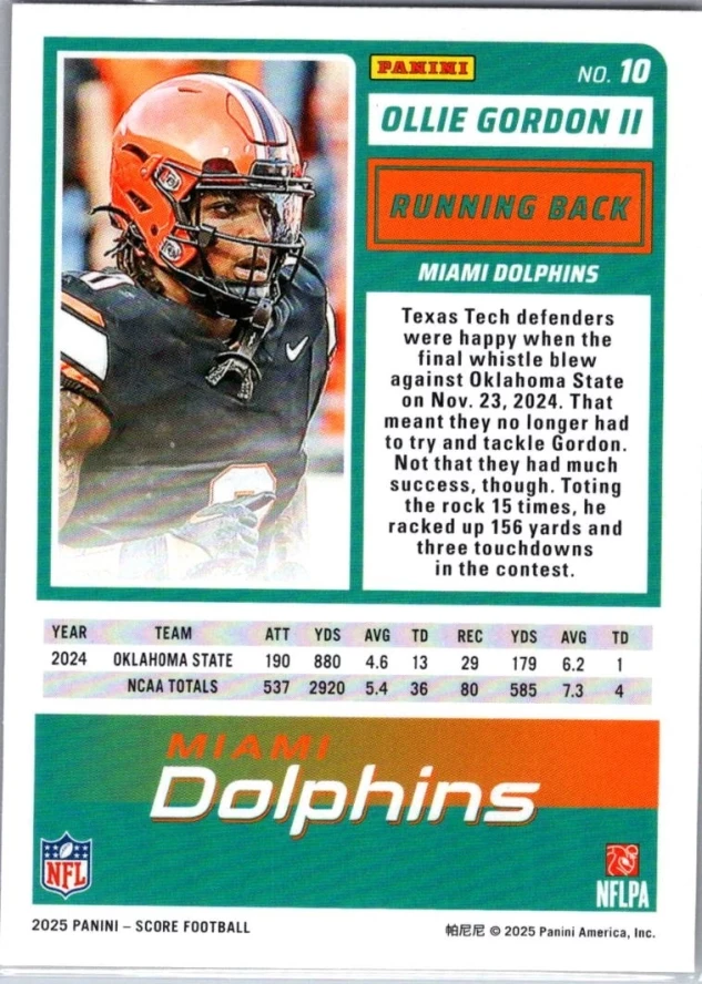 In 2025 Ollie Gordon II played for the Miami Dolphins.