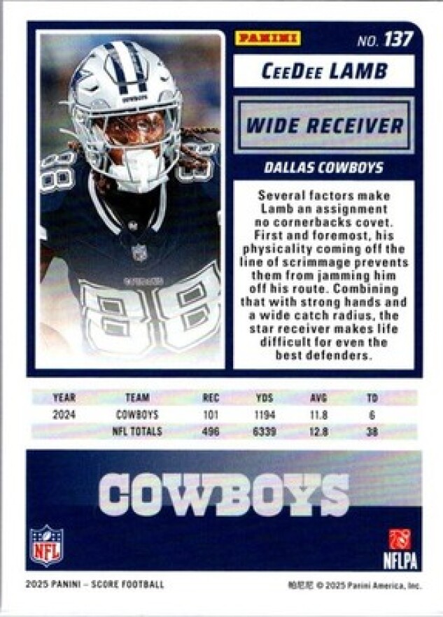 This is a nice example of a 2025 Score-A-Treat #137 CeeDee Lamb