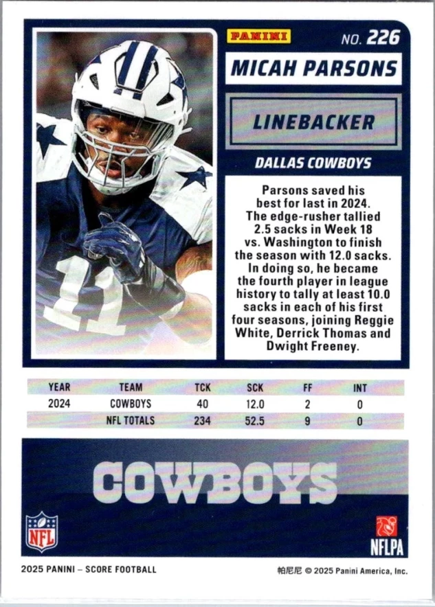 In 2025 Micah Parsons played for the Dallas Cowboys.