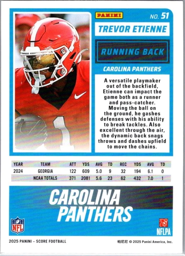 This is a nice example of a 2025 Score-A-Treat #51 Trevor Etienne