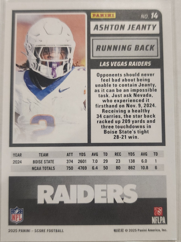 2025 Score Ashton Jeanty RC