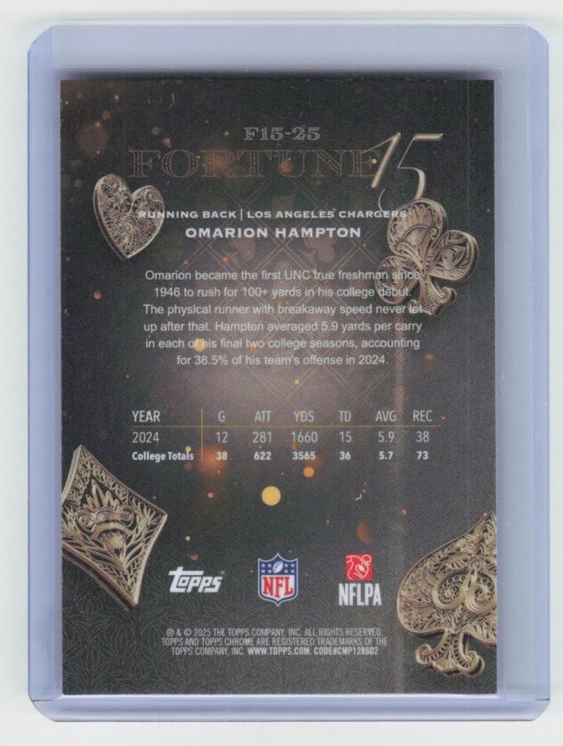 2025 TOPPS CHROME #F1525 Omarion Hampton RC FORTUNE 15