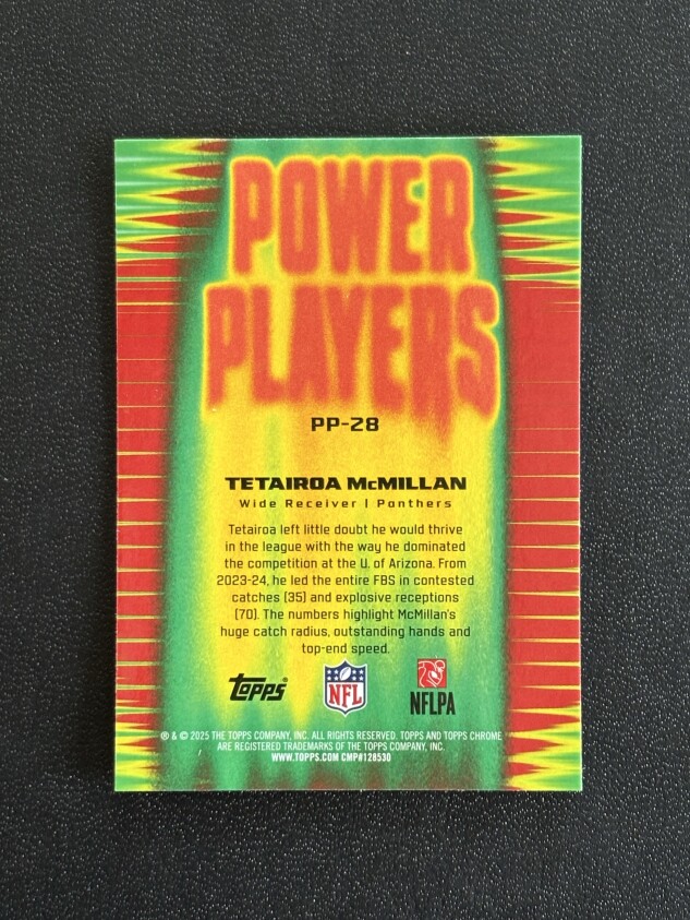 2025 Topps Chrome Football Power Players Tetairoa McMillan RC Carolina Panthers