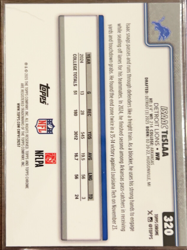 You are purchasing a 2025 Topps Chrome Isaac TeSlaa #320 RC. You will receive the exact item in the photographs. Thank you for looking.