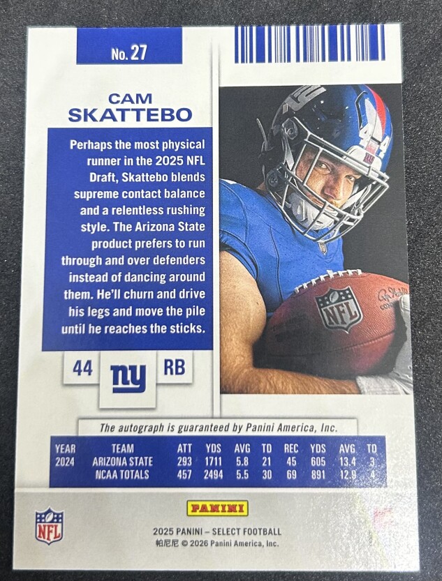 You are purchasing a 2026 Panini Contenders Football Rookie Ticket Cam Skattebo #27 RC. You will receive the exact item in the photographs. Thank you for looking.