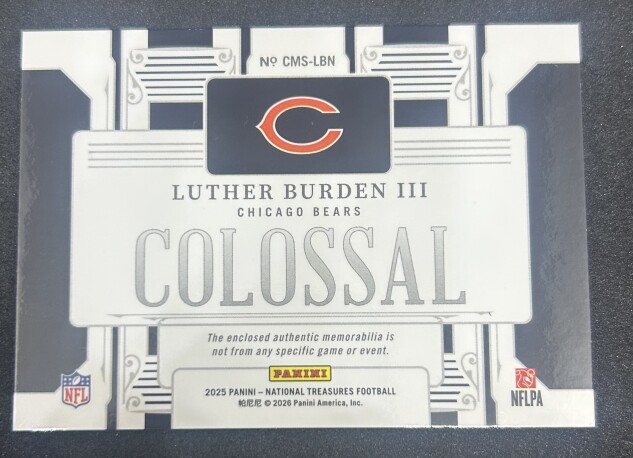 You are purchasing a 2026 Panini National Treasures Colossal Luther Burden III #CMS-LBN RC 20/25 Memorabilia. You will receive the exact item in the photographs. Thank you for looking.