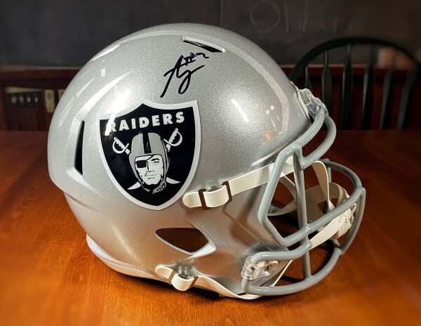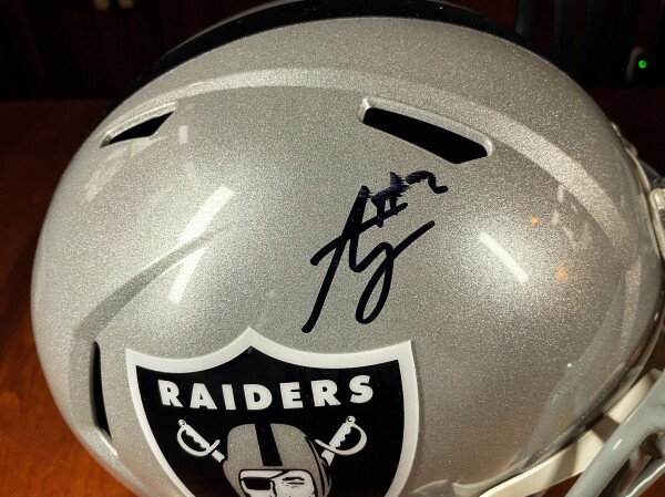 This is (1) ASHTON JEANTY Signed Authentic Riddell Speed Replica Helmet Autographed Beckett Witness COA Raiders.