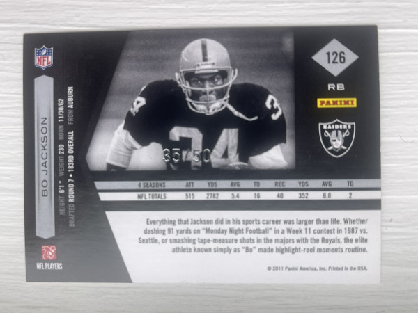 Bo Jackson 2011 Limited Legends Spotlight 35/50