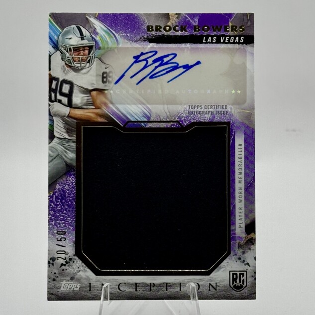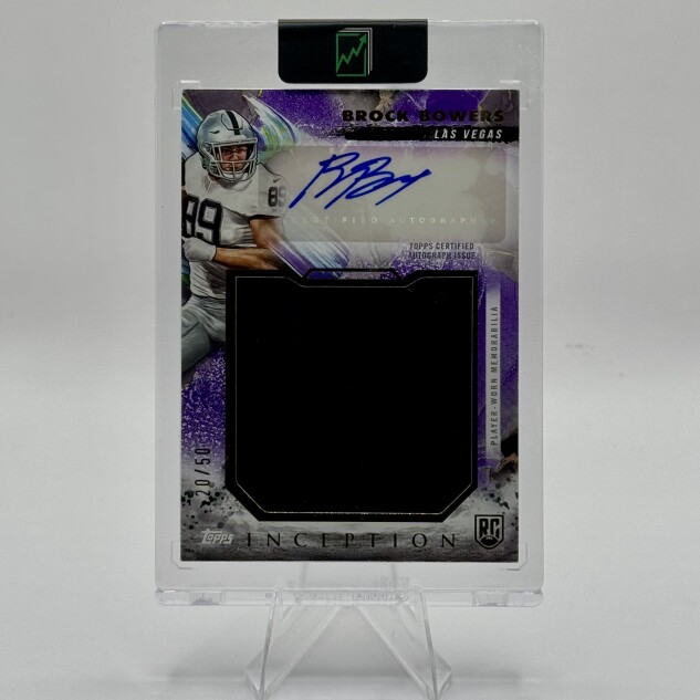 Brock Bowers 2024 Topps Inception Rookie Jumbo Relic Auto Purple /50