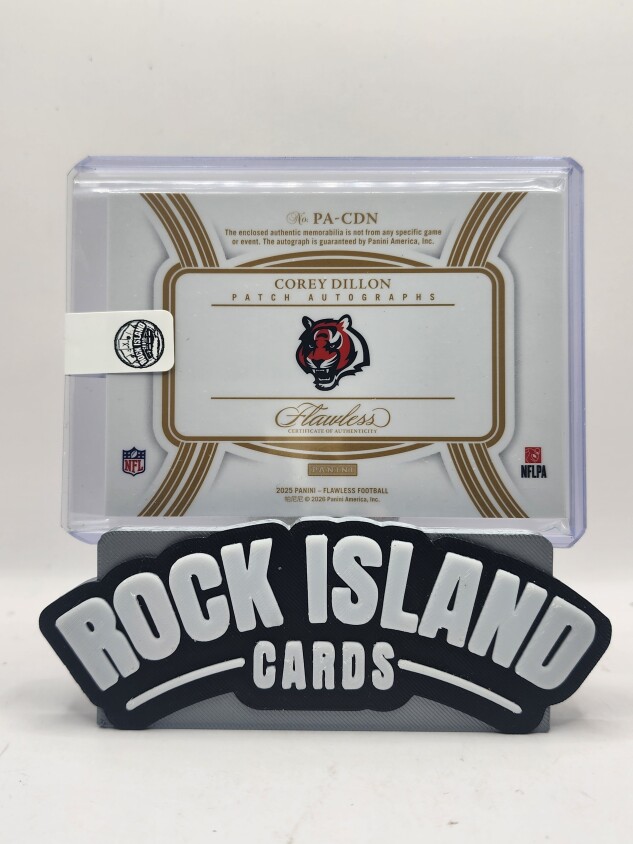 You are purchasing a Corey Dillon 2026 2025 Panini Flawless #PA-CDN Patch Autograph 04/20. You will receive the exact item in the photographs. Thank you for looking.