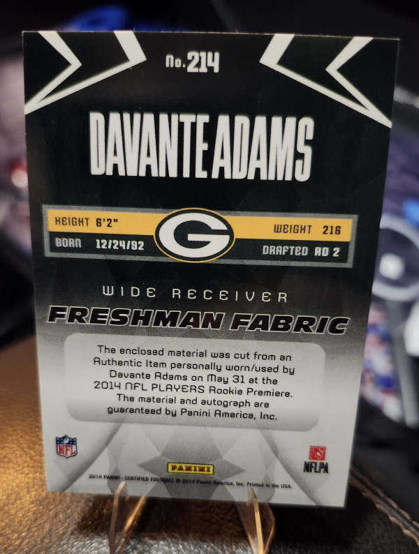 2014 PANINI CERTIFIED DAVANTE ADAMS FRESHMAN FABRIC PLAYER WORN ROOKIE PATCH AUTO /699.