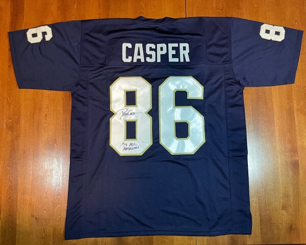 This is (1) DAVE CASPER Signed Notre Dame Custom Jersey that includes a “‘73 All American” Inscription and a JSA Certificate of Authenticity.