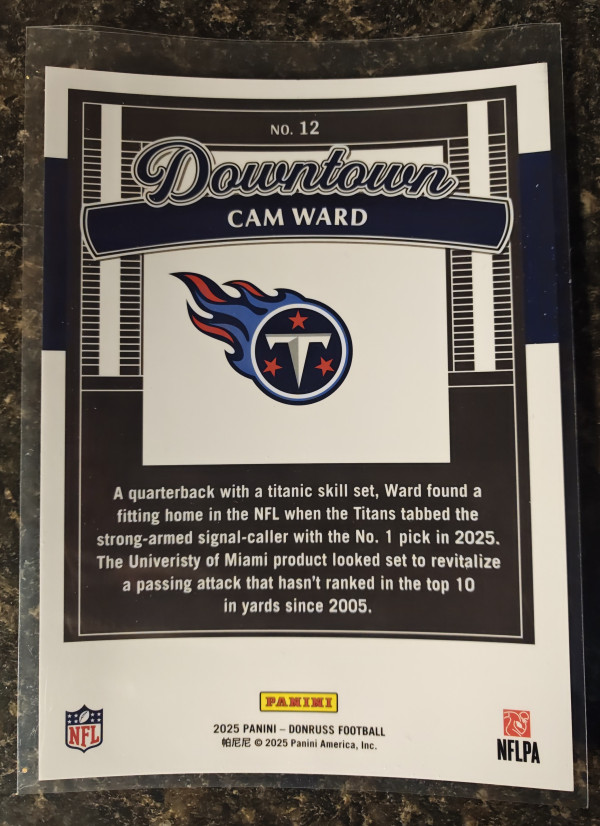 2025 Donruss Cam Ward Rookie Jumbo Card.