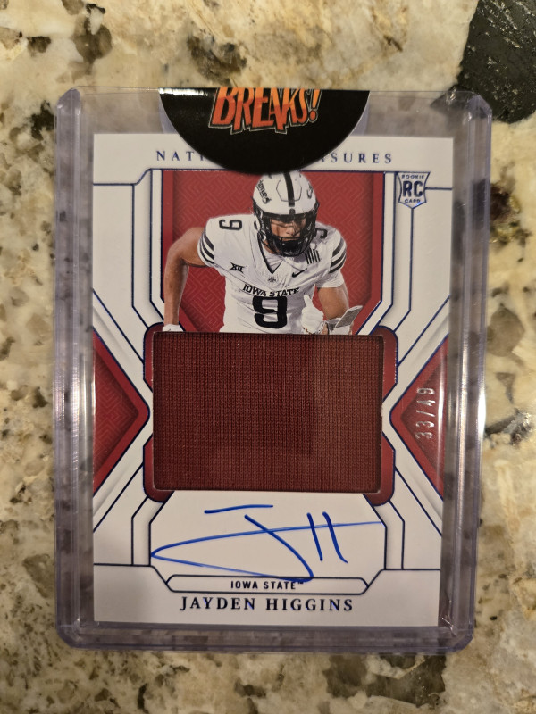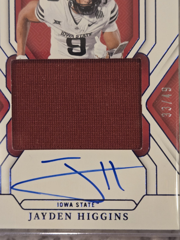 Jayden Higgins Panini Collegiate National Treasures True RPA /49