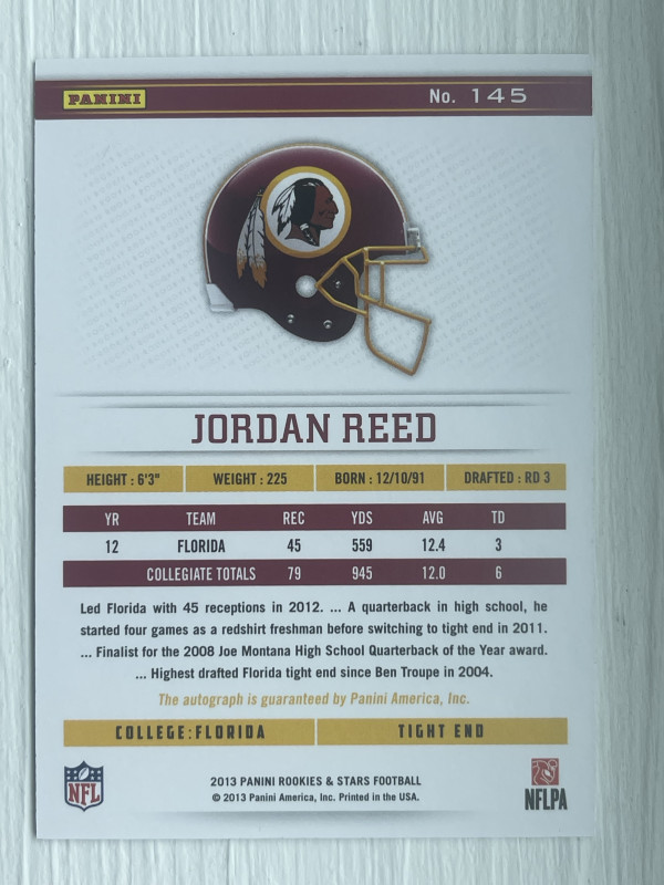 Jordan Reed 31/49 2013 Panini Rookies And Stars Auto