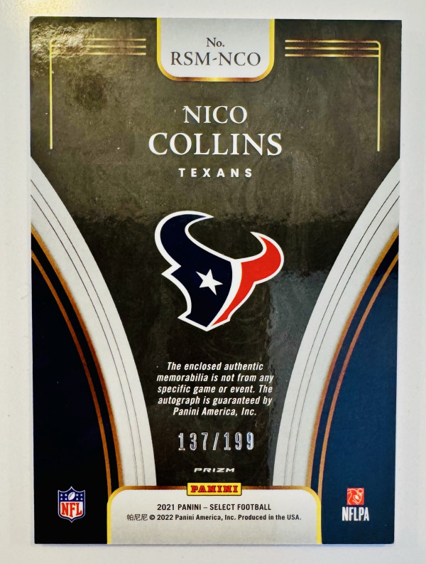 Nico Collins 2021 Panini Select RPA /199 Ready for a big seaso!