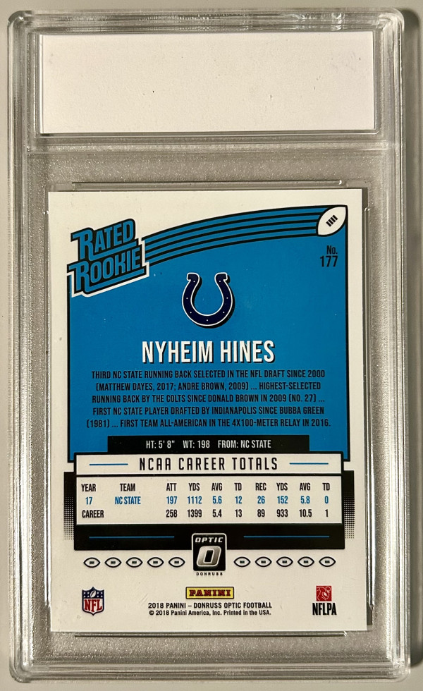 Nyheim Hines 2018 Optic Rated Rookie BMG 10 GEM MINT Indianapolis Colts