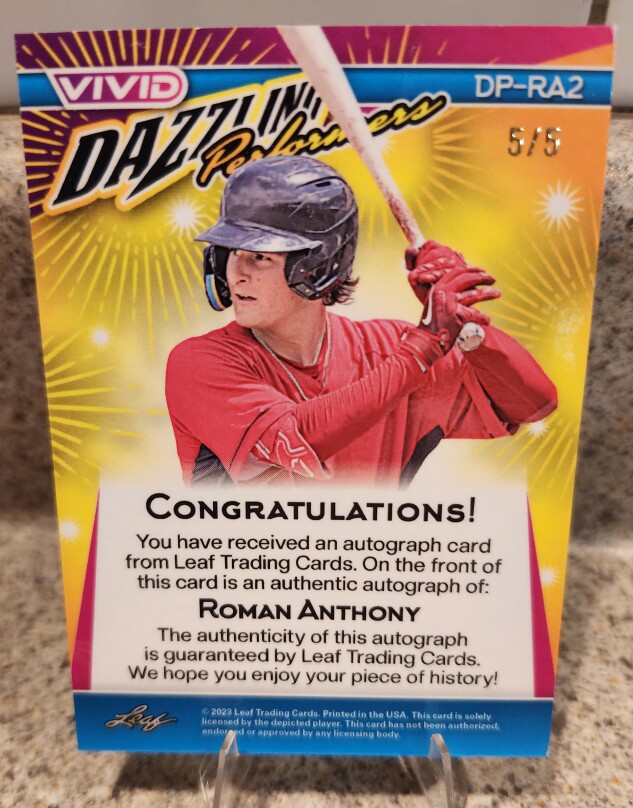 2023 LEAF/VIVID ROMAN ANTHONY DAZZLING PERFORMERS GOLD CRACKED ICE AUTO 5/5