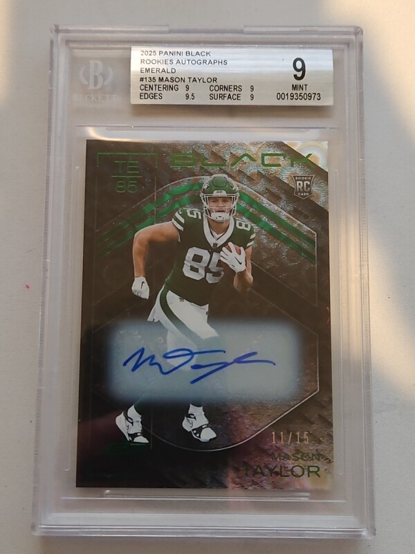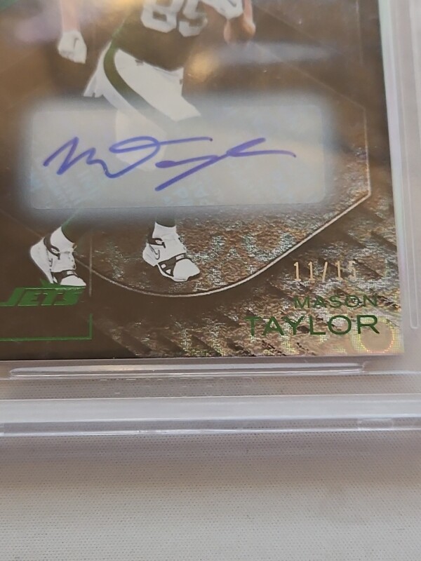 Very clean Autographed Rookie/15 Mason Taylor. This kid has a lot of potential and will be a great tightend when the Jets get their QB situation handled. Ready to ship
