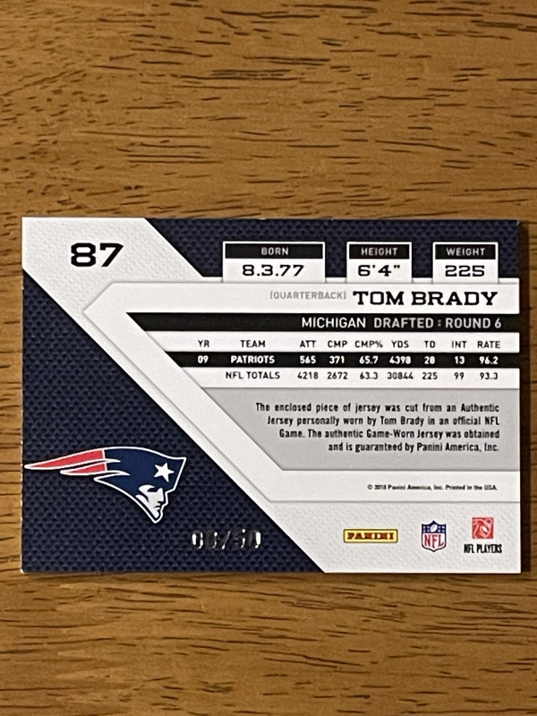 Tom Brady 2010 Panini Threads 4 color patch #8/50