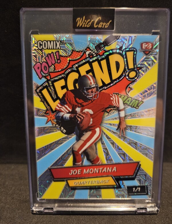 Very rare 1/1 back-to-back Wild Card comix Legend Steve Young and Joe Montana